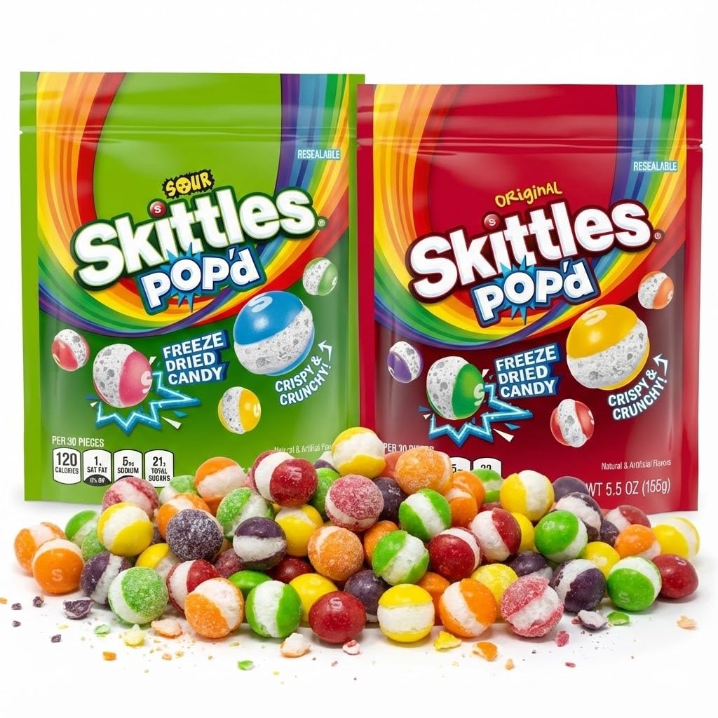 ASSORTIT X SKITTLES COLLAB – Sour Just Got a Serious Crunch Upgrade! Say hello to the next evolution in sour candy: Sour Skittles POPD — freeze dried, crunchy, and bursting with fruity tartness in every bite. This exclusive 3-pack from Assortit transforms your favorite sour treat into a bold, airy snack experience that melts in your mouth and makes your taste buds tingle. Each piece is packed with that signature tangy punch, elevated through freeze drying to amplify both flavor and texture. Sour strawberry, lemon, lime, grape, and orange flavors are taken to the next level—no stickiness, just pure, crispy fruit-forward intensity. Whether you're treating yourself or surprising someone else, these resealable 5.5 oz bags are perfect for school snacks, classroom treats, holiday gift baskets, or adding color to an Easter parade, Christmas stocking, or candy bowl. Perfect for fundraisers, care packages, raffle prizes, or a fun addition to a pinata at your next party. With a crunch that kids love and flavor adults appreciate, these sour treats are ideal for anyone who enjoys bold snacks with a nostalgic twist. Made for sharing, gifting, and snacking, this 3-pack is a must-have for anyone craving that old-fashioned American candy shop experience—with a twist. Why Customers Love It: ✔ The Perfect Sour Crunch — Light, Crispy, And Mouth-Puckering ✔ Freeze Dried For Amplified Flavor And Texture ✔ Assorted Flavors In Every Bag ✔ Great For Events, Gifts, Parades, Or On-The-Go Snacks ✔ Curated By Assortit, A Trusted Name In American Bulk Candy Try It Now And Bring A Sour POP To Your Candy Collection! Order Today And Enjoy A Crunchy New Take On A Classic Snack.