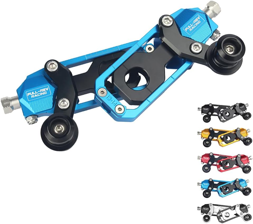 Material: 6061 T-6 billet aluminum Finish: CNC machined, anodized Application: ZX10R 2008-2010 Feature: Race track tested & proven design. Allow quick & accurate indexed chain adjustment. Precision CNC machined with aircraft grade materials and High strength quality hardware Integrated with lifting spool design, for easy & secure way to lift bike. Spools made from high impact resistance Delrin plastic Easy to turn & adjust hand knob, can be use with wrench or socket. All products are photographed in physical form, due to various factors such as camera exposure, different lighting, and monitor brand configuration. There may be slight deviations in the color of the image and the actual product. Please refer to the actual product for accuracy